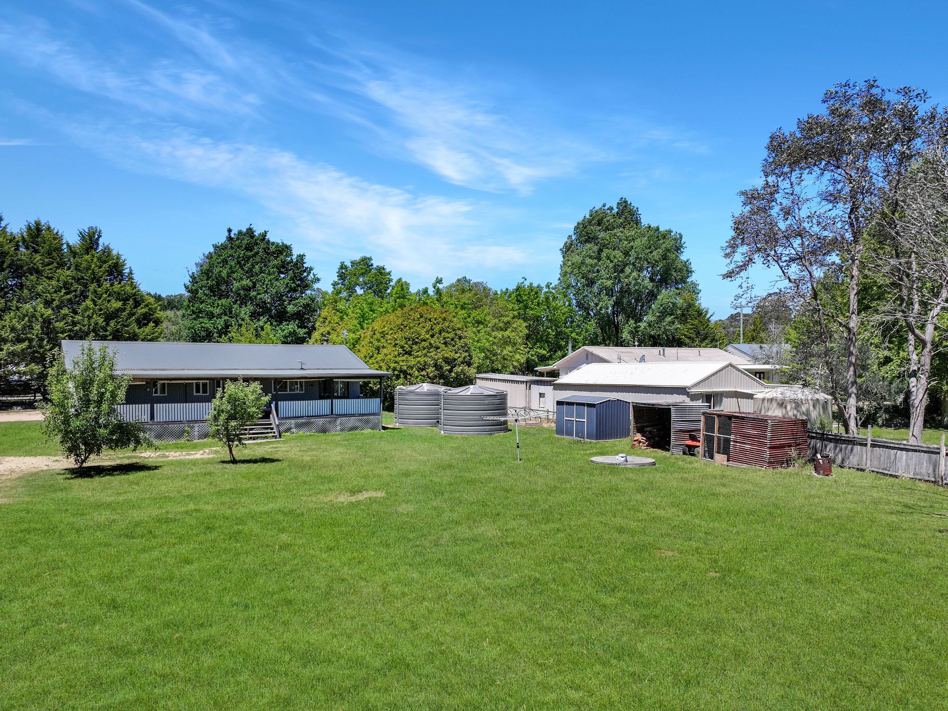 Inside, year-round comfort is assured with ceiling fans throughout, a slow-combustion wood fire, ducted heating and cooling, plus a split-system air conditioner. Outdoors, the property shines with practical features including a chicken coop, four garden beds, a wood shed, and a solid garden shed on a slab, perfect for hobby gardeners or those needing extra storage. The full-length rear verandah offers a peaceful spot to relax and soak in the quiet village setting. Modern conveniences are covered too, with bin collection, reliable 5G mobile service, and two substantial 25,000L water tanks. Ample off-street parking completes the picture.